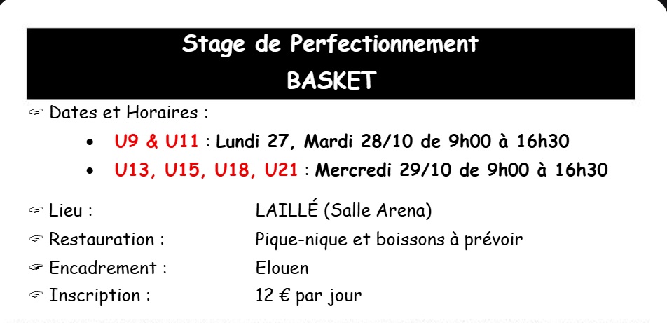 CAT. U9 et U11 : LUNDI 27/10 et MARDI 28/10